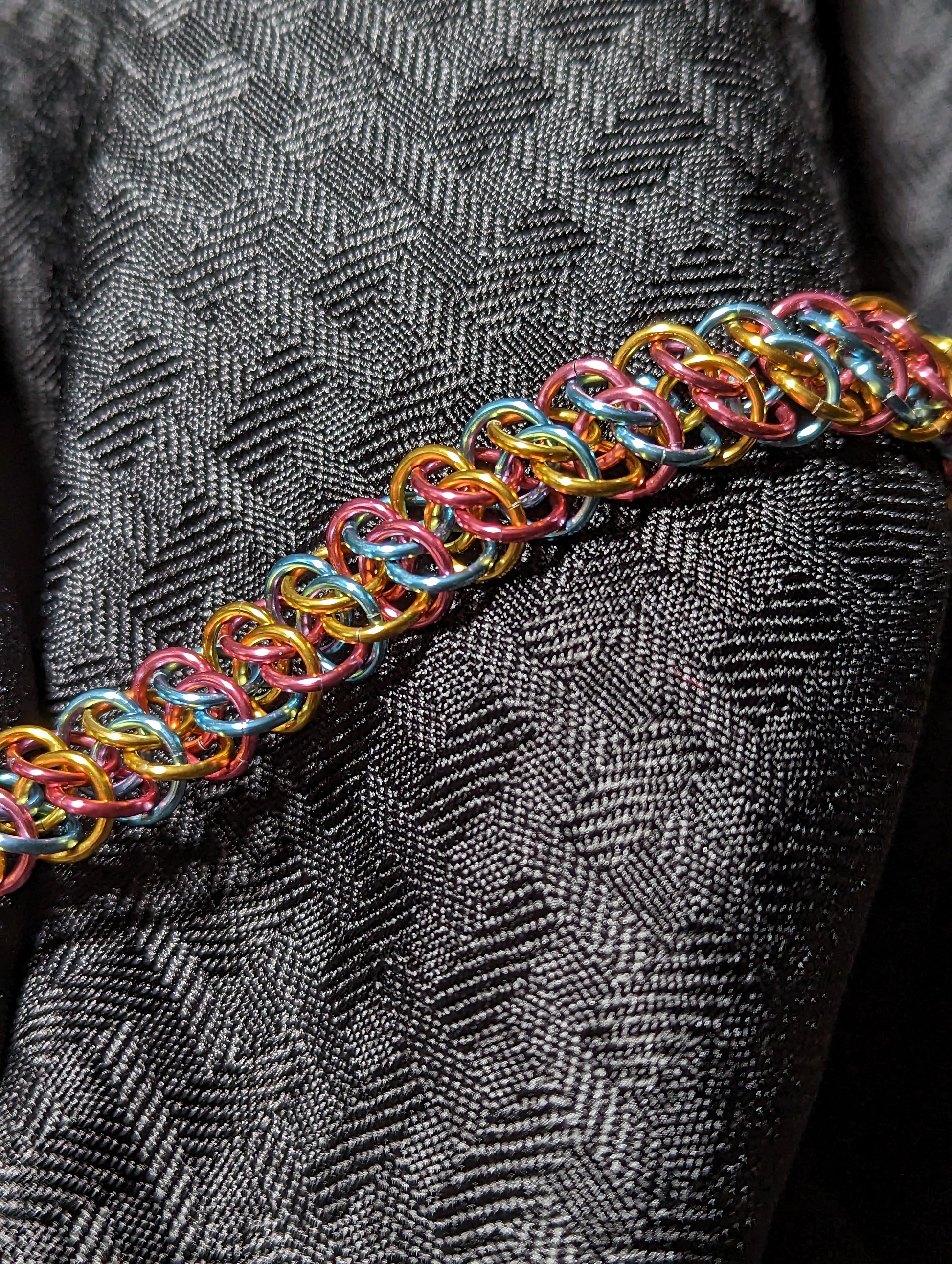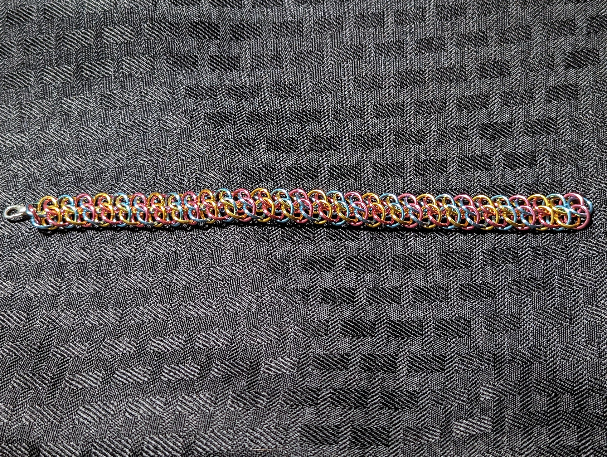Chainmaille Metropolis Weave Bracelet in Pink, Yellow, and Light Blue (Pan Pride)